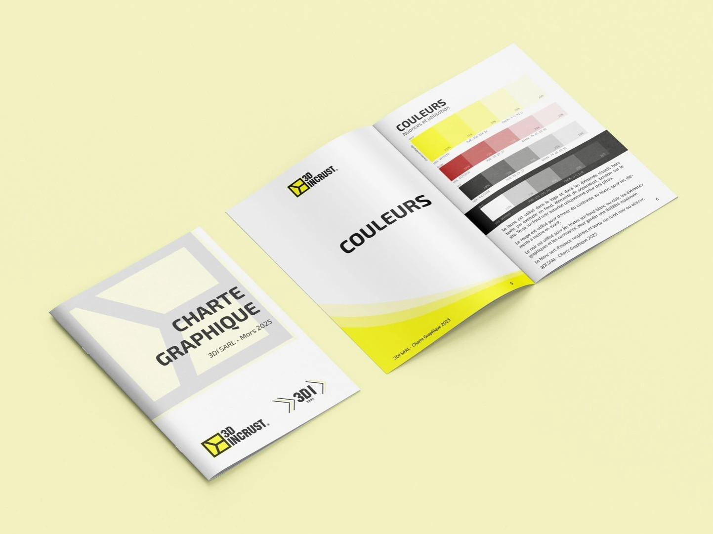 En me basant sur le site internet et les éléments existant, j'ai pu recréer une charte graphique unique pour 3D Incrust.