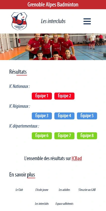 « Avec plus de 600 adhérents, le Grenoble Alpes Badminton est actuellement un des plus grands clubs de France. De nombreux publics se croisent ainsi chaque jour dans les gymnases de Grenoble qu’ils soient loisirs, jeunes, compétiteurs, vétérans, minibad.