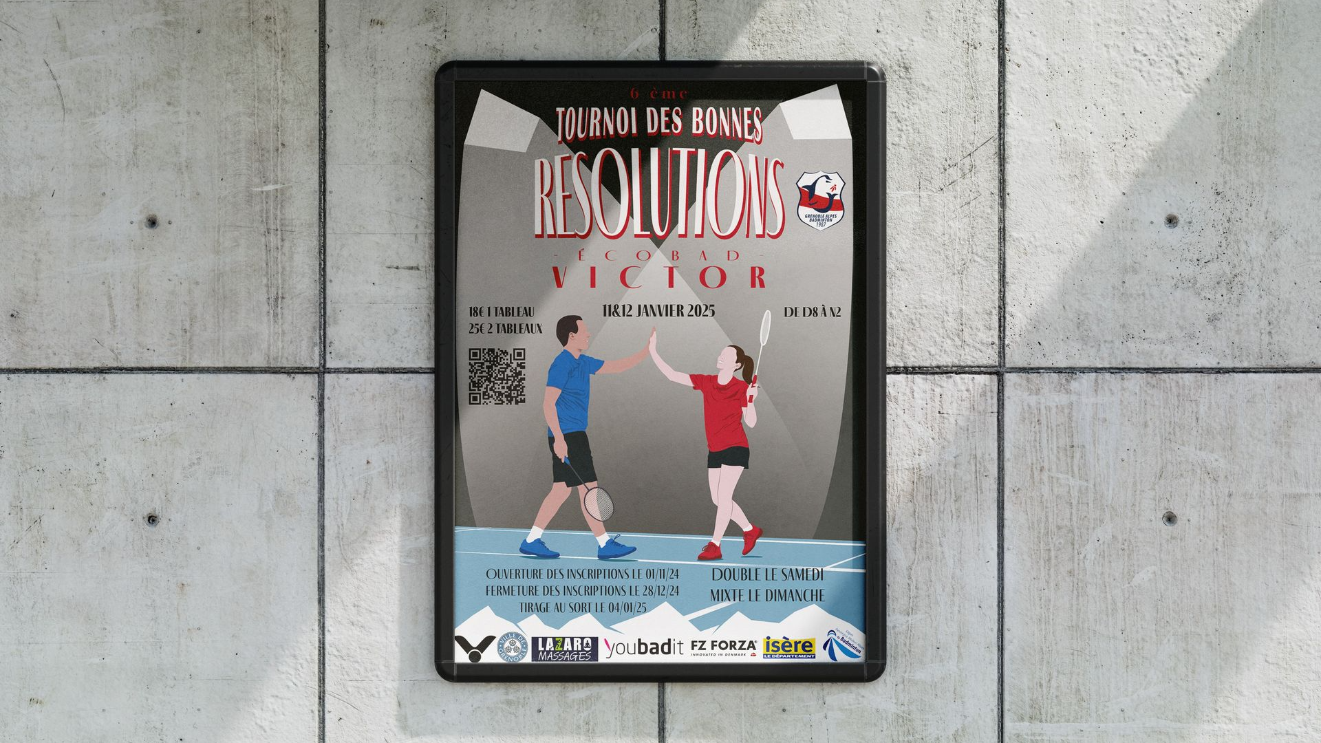 Le Grenoble Alpes Badminton, club de badminton créé en 1987, et aujourd'hui l'un des plus grands clubs français. Avec ses plus de 600 licenciés, ses tournois jeunes et séniors, le GAB se doit d'avoir une communication visuelle dynamique et cohérente qui touche l'ensemble des joueurs.